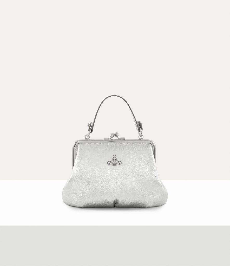The design of the Granny Frame purse references early 20th-century coin purses, offering an exposed polished framework and a kiss-lock clasp, complete with a grain-embossed finish. At the centre sits a silver-tone orb motif, which symbolises tradition, encircled by the celestial rings of Saturn, symbolising the future.